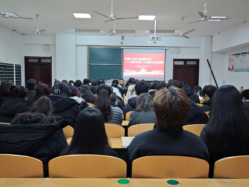 为深入学习贯彻党的二十届四中全会精神,引导青年学生坚定理想信念、强化使命担当,11月18日,文学与历史文化学院举办“青春心向党 奋进新征程”宣讲党的二十届四中全会精神主题党课。本次党课由学院党委书记仲冲主讲,学院部分教职工、学生党员、学生骨干、学生入党积极分子参加。