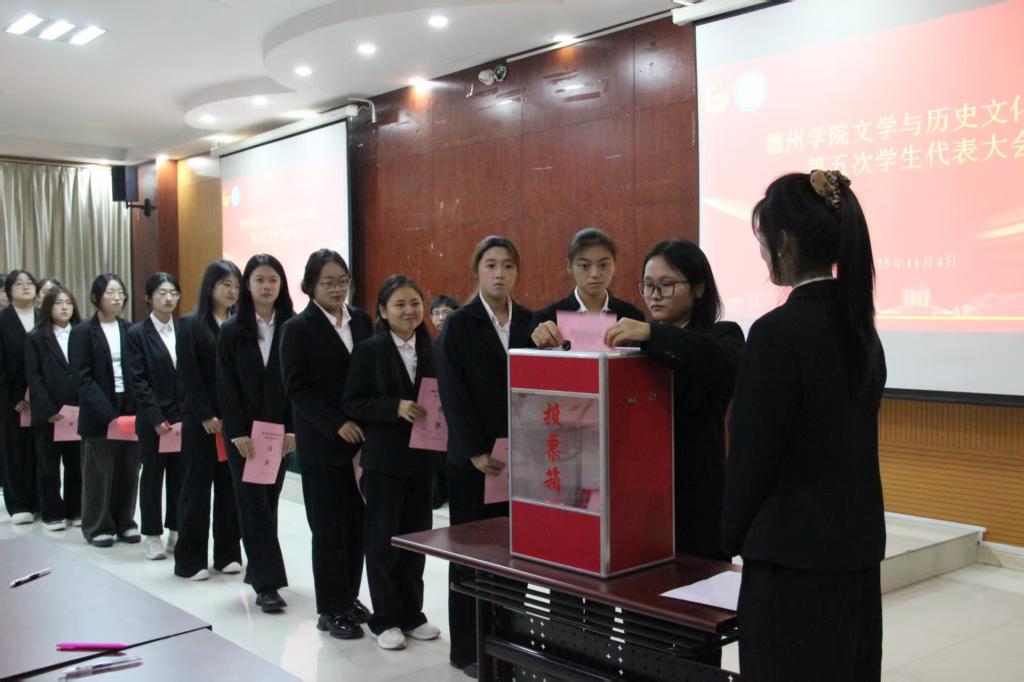 随后,学生代表审议通过了会议选举办法,推选监票人、指定计票人,秉持着公平公正的原则,采用无记名差额投票方式最终选出2025届文学与历史文化学院主席团成员以及参加德州学院第八次学生代表大会的学生代表。