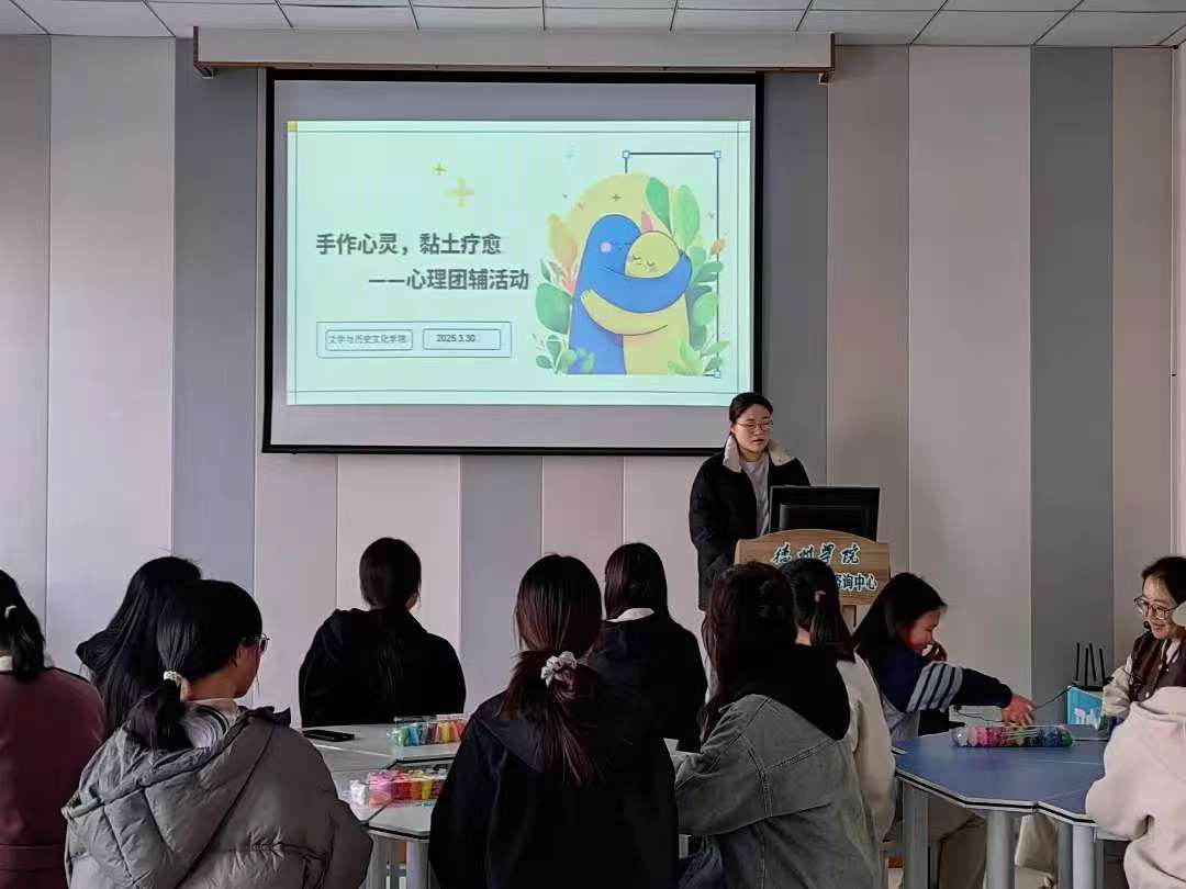 在快节奏的学习生活中,大学生们承受着学业的繁重、社交的复杂以及职业规划迷茫带来的多重心理负荷。为帮助同学们缓解焦虑,提供情绪释放的途径,3月30日,文学与历史文化学院组织开展了“心灵手作,粘土疗愈”朋辈心理团辅活动。