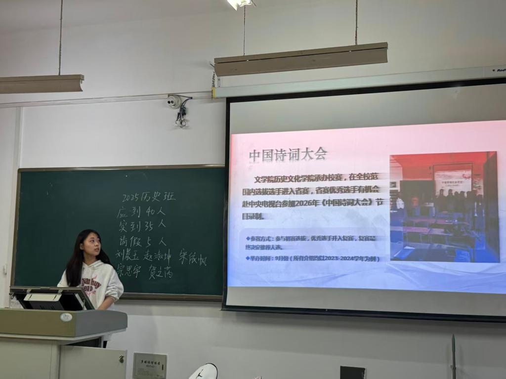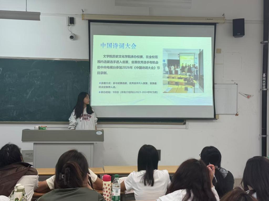 为引导新生深入感受中华优秀传统文化的魅力,筑牢文化自信根基,9月20日,文学与历史文化学院举办中国诗词大会主题宣讲活动。