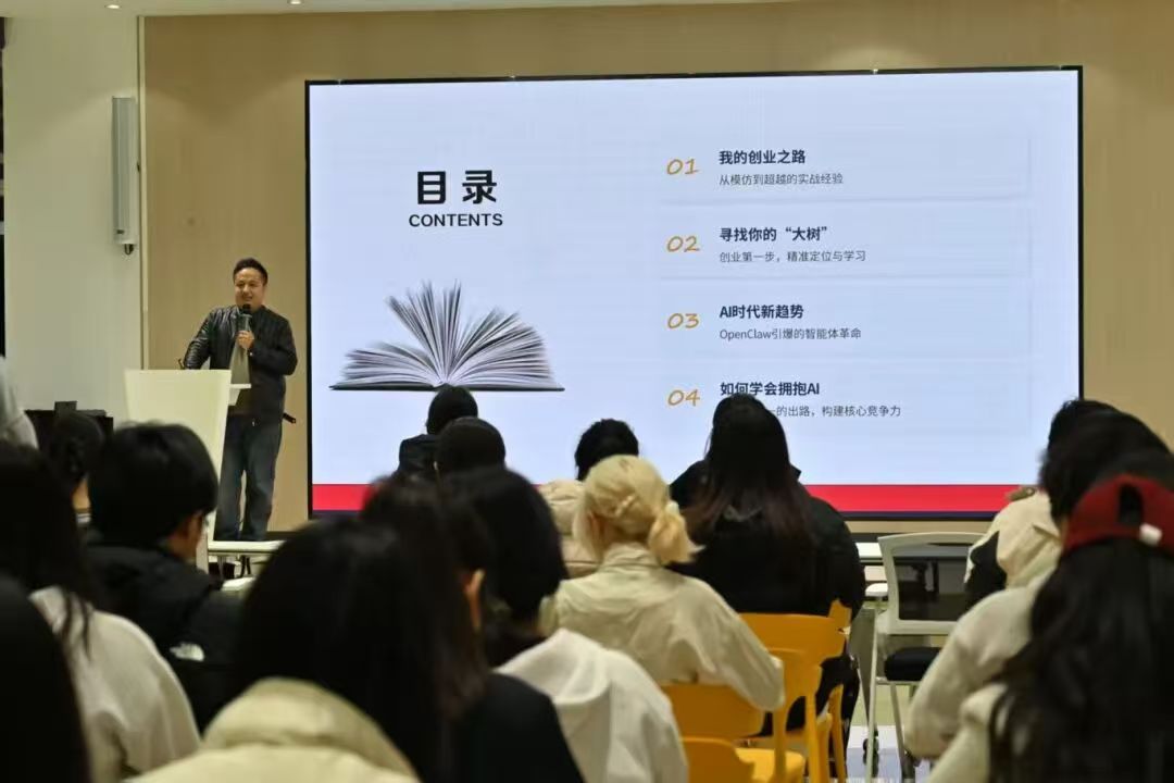 郑泽龙则以《从模仿到超越:短视频创业与AI未来趋势》为主题,系统讲解了短视频创业的实战路径,深入剖析AI智能体技术对内容创作与商业模式的深远影响。他强调,AI是能力的放大器,唯有持续学习、主动拥抱技术,才能在变革中赢得先机。
