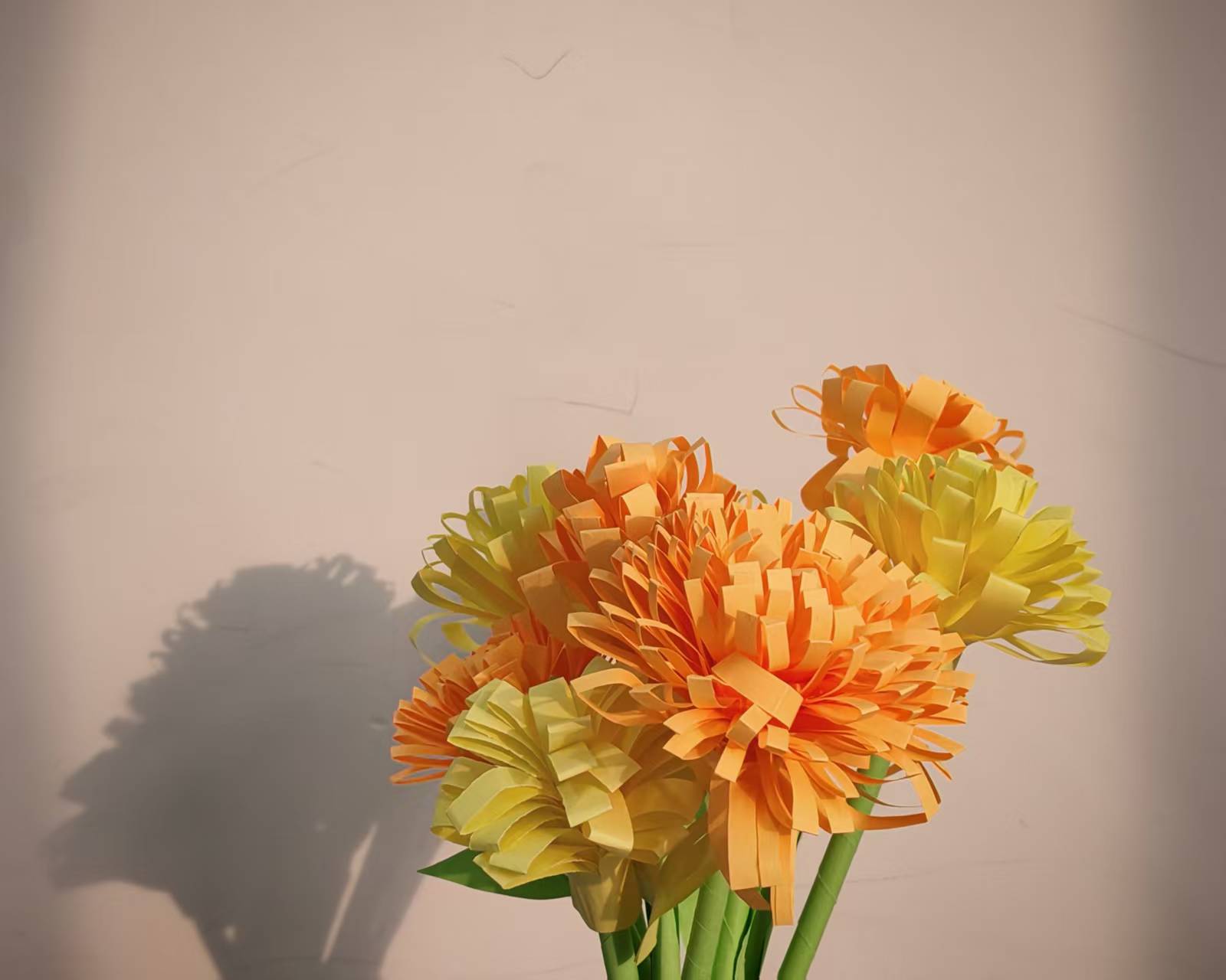 在充满传统意趣的氛围中,同学们手持彩纸与剪刀,投入菊花剪纸的创作。大家细致观察菊花的形态,在纸上勾勒出花瓣轮廓,再沿着线条精心剪裁。通过层叠、镂空等手法,原本平整的彩纸渐渐绽放为一朵朵寓意吉祥的剪纸菊花。作品分享环节,同学们不仅交流剪纸心得,更结合重阳文化内涵,讲述各自对“敬老”与“团圆”的理解。一件件剪纸作品,成为传递情感与祝福的媒介,也让节日的温暖在言笑间静静流淌。