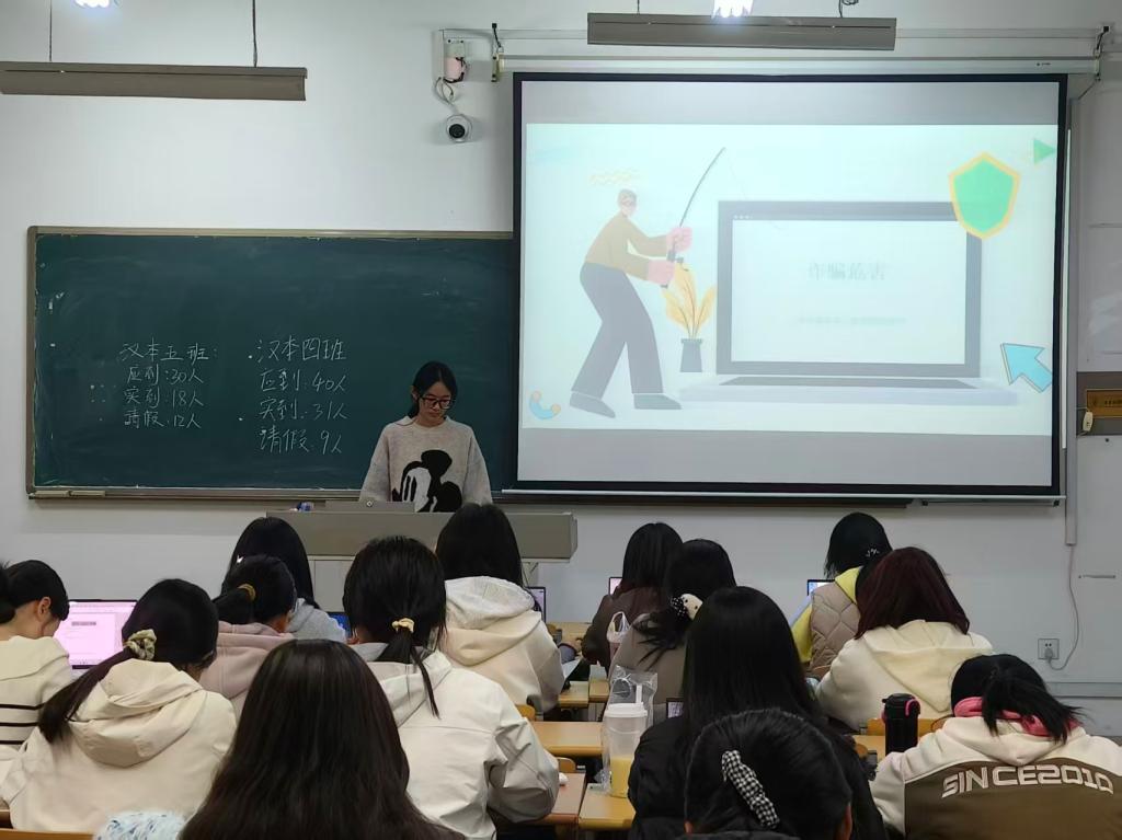 为全面增强师生反诈意识,筑牢校园安全防线,11月9日,文学与历史文化学院组织各班召开“反诈防线筑心间,财产安全伴我行”主题班会,通过精准宣讲为师生的财产安全撑起“保护伞”。