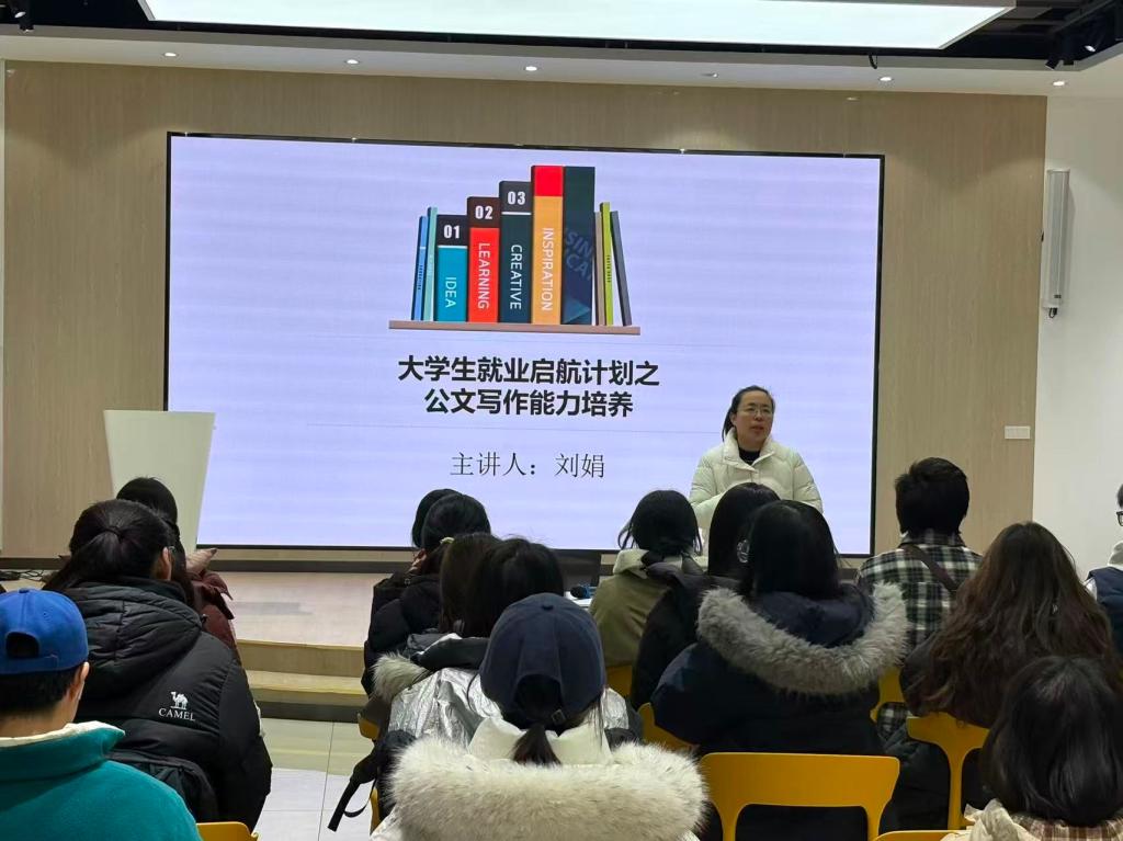 为提升学生公文写作素养,夯实就业核心竞争力,德州学院文学与历史文化学院依托“大学生就业启航计划”,特邀刘娟老师开展公文写作能力培养专题讲座,学院众多学生到场参与学习。