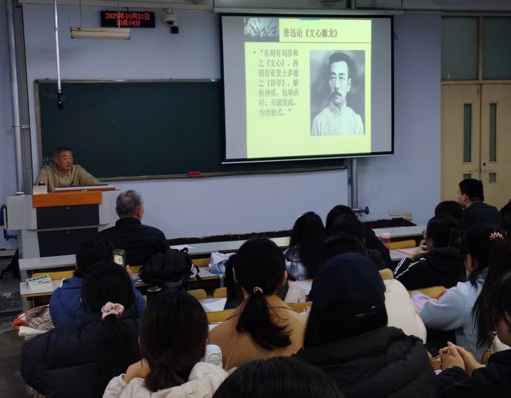 10月31日上午,文学与历史文化学院在美术楼102教室成功举办题为“《文心雕龙》及龙学研究”的学术报告。本次报告邀请安徽师范大学文学院博士生导师李平教授担任主讲。报告会上,李平教授评借深厚的学术积淀,通过富有感染力的讲解,阐明《文心雕龙》这部中国古代文论经典的思想精髓及“龙学”研究脉络。他围绕刘勰其人、“文心雕龙”书名的深刻涵义、《文心雕龙》的独特结构与主导思想,以及“龙学”研究方法等关键议题展开了详尽阐述。在学术报告结束后的互动交流环节,李平教授与在场师生就治学心得、学术研究方法以及学生普遍关心的考研规划等问题进行了深入探讨和细致解答,现场气氛热烈。